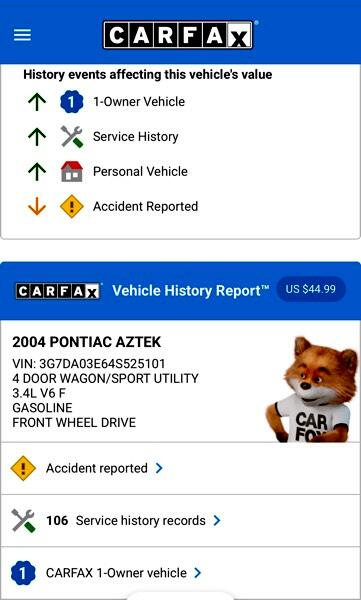 Vehicle Inquiry for 2004 Pontiac Aztek FWD